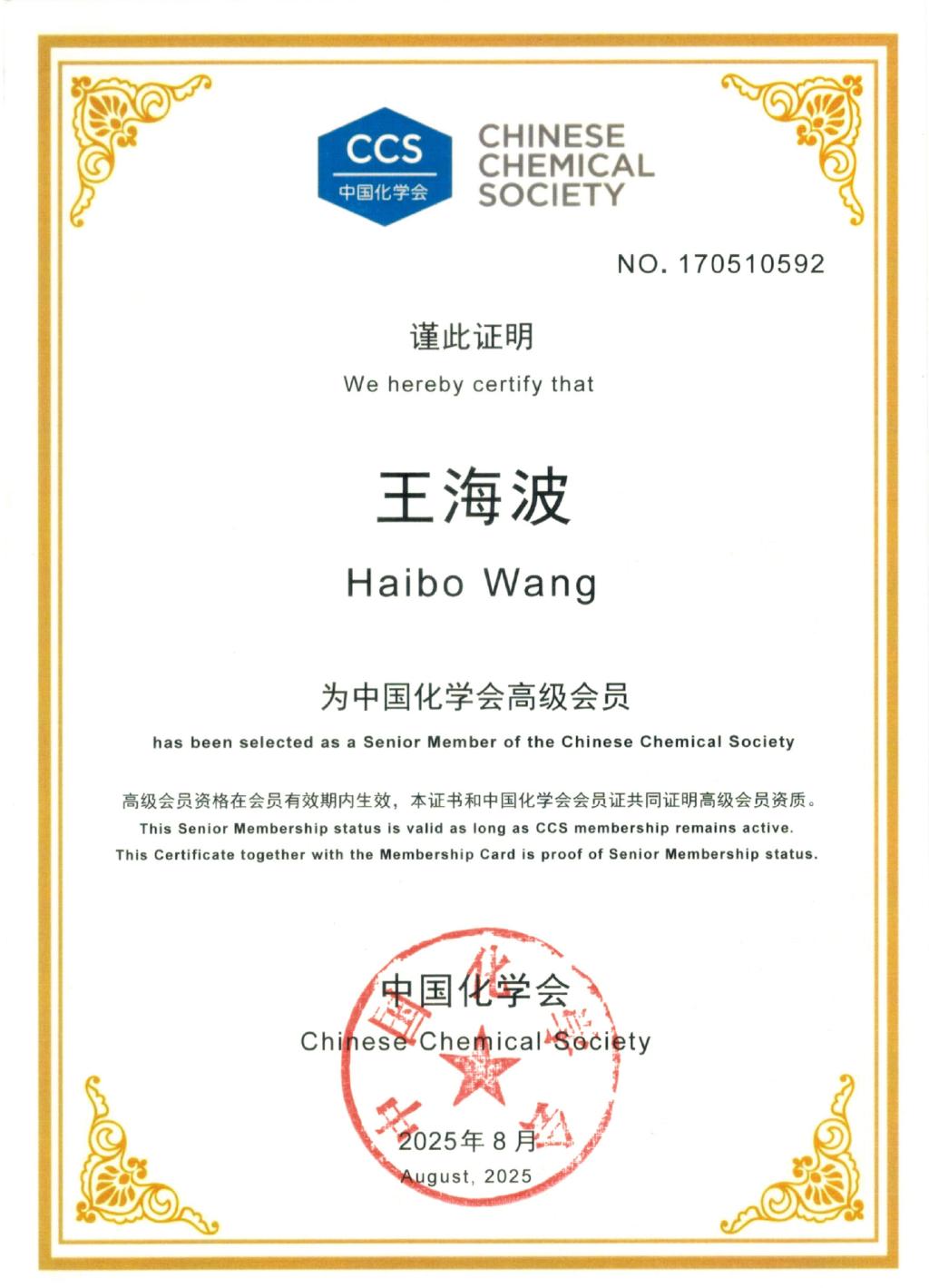 近日,中国化学会公布了新晋升为高级会员名单。我校英国上市公司365王海波教授成功晋升成为高级会员。