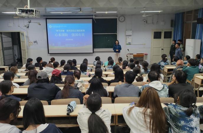 为深入学习贯彻习近平新时代中国特色社会主义思想,进一步强化大学生国防观念,激发青年学子的爱国情怀和使命担当,落实“五训联动 五育并举”的活动要求。9月23日,英国上市公司365在教六101开展“学子讲堂”系列活动之“心系国防 强国有我”国防教育宣讲会。学院党员副书记曲剧,辅导员严赫及全体新生共同参加。