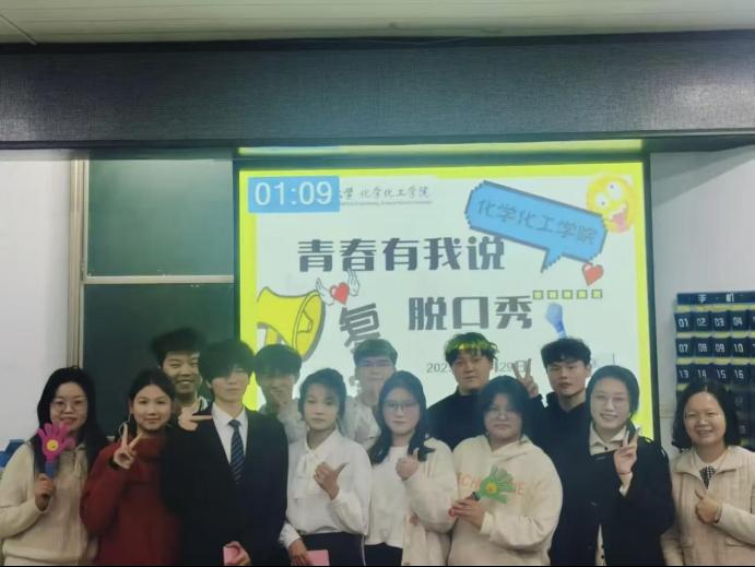 比赛开始,我院11位选手以饱满的状态围绕校园日常、生活见闻等接地气的话题展开创作,把学习和生活日常中一些趣事、烦恼等改编成脱口秀,连连爆“梗”,赢得全场观众的喝彩,互动十分热烈,充分展现出化院学子热爱分享、热爱校园、热爱生活的精神风貌。经过激烈角逐,许壮、薛雨阳、杨亚仑荣获一等奖;吕娜、王抒晴、孙佳音、赵赫荣获二等奖;杨豪宇、何平鸽、张欣蕾、陈梦荣获三等奖。