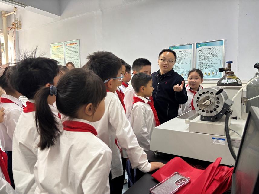 二楼省重点实验室成为科普月里的“神奇角落”。扫描电子显微镜将矿石放大数万倍,纳米级的结构纹理清晰呈现在屏幕上,孩子们挤在操作台前惊叹:“原来我们摸起来光滑的石头,里面长这样!”讲解员配合首届科普月“互动体验”的理念,操作X-射线衍射仪为矿石做检查、用能谱仪分析元素组成,还特意针对孩子们熟悉的猫砂,讲解“膨润土里的特殊成分如何锁水”。